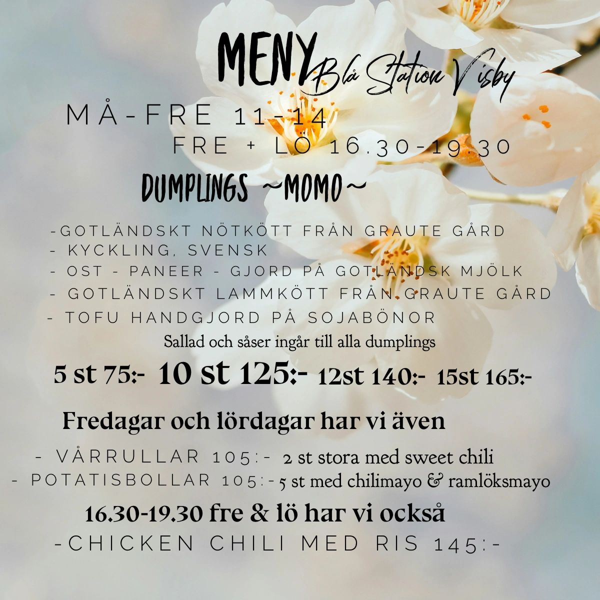 Hos Sundars Momo är vi noggranna med ingredienserna och har i möjligaste mån gotländska, men alltid svenska råvaror.